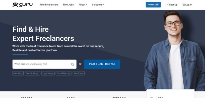 Guru is known for its simplicity, reliability, and transparent payment system. It covers a wide range of categories, including programming, writing, architecture, sales, and administrative support. The platform allows freelancers to showcase previous work experiences, which helps beginners attract clients even without prior online reviews.