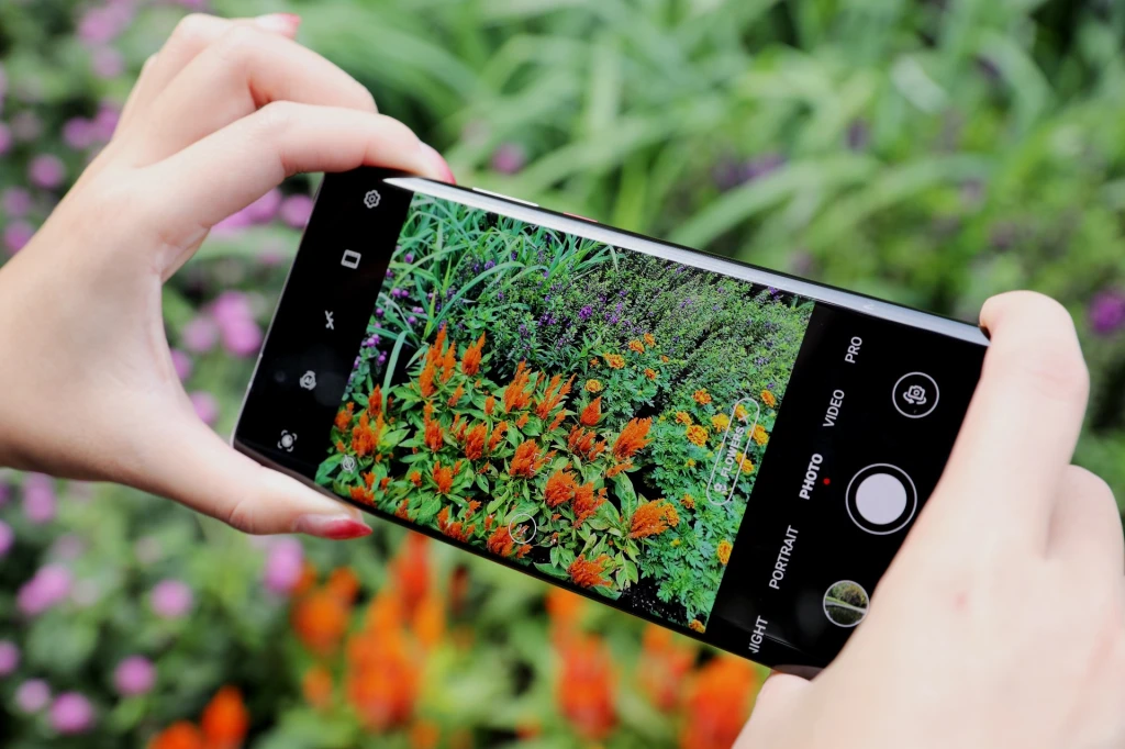The Huawei Mate 40 Pro carries a triple Leica camera setup, including a 50MP wide lens, a 12MP periscope telephoto with 5x optical zoom, and a 20MP ultrawide lens. It is capable of recording in 4K@60fps, ultra-slow motion up to 720p@3840fps, and offers HDR and gyro-EIS stabilization for cinematic footage.