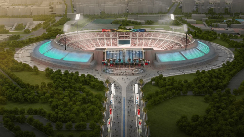 It includes a presidential lounge, hospitality suites, training pitches, and Olympic-standard facilities.